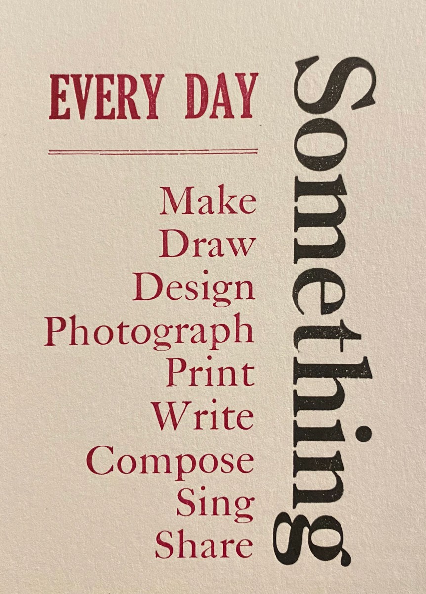 Below, you’ll find work made with movable type, hand-drawn illustrations, and woodcut images — all printed on letterpress. The layouts and design decisions are original, and much of the artwork as well.